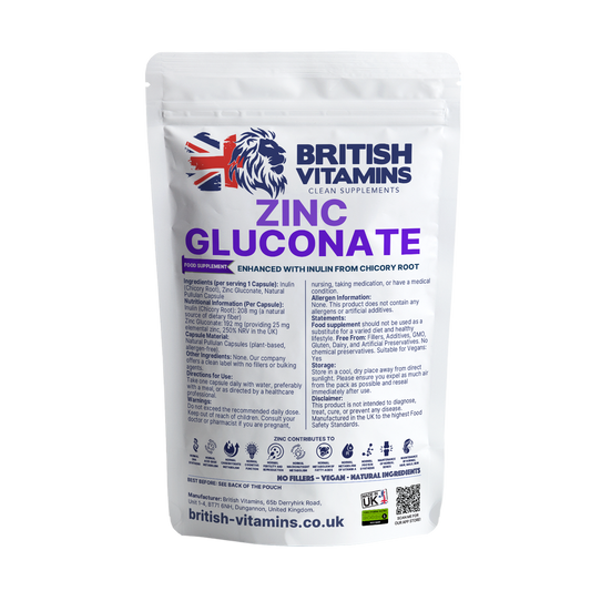 Zinc Gluconate – 25mg Elemental Zinc per Capsule/Zinc Gluconate 25mg Elemental Zinc – 200g Pure Powder – Vegan, No Fillers,