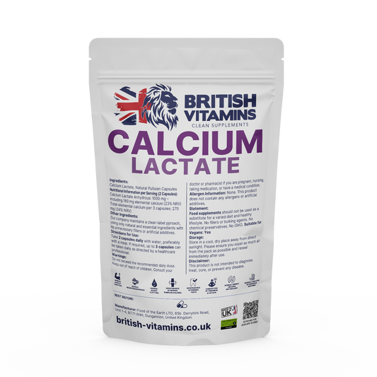 Calcium Lactate 1000mg 180mg Elemental Calcium Clean-Label